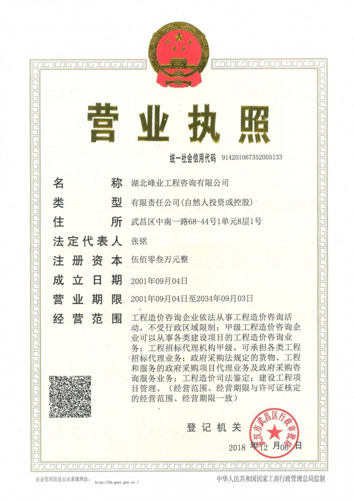 湖北峰業(yè)工程咨詢(xún)有限公司,成立于2001年9月,注冊(cè)資金500萬(wàn)元,是中華人民共和國(guó)住房和城鄉(xiāng)建設(shè)部批準(zhǔn)的甲級(jí)工程造價(jià)咨詢(xún)企業(yè)和甲級(jí)招標(biāo)代理機(jī)構(gòu)及湖北省財(cái)政廳批準(zhǔn)的乙級(jí)政府采購(gòu)代理機(jī)構(gòu),公司現(xiàn)有專(zhuān)職員工55人,其中高級(jí)職稱(chēng)6人,中級(jí)職稱(chēng)12人,國(guó)家注冊(cè)造價(jià)工程師10人。